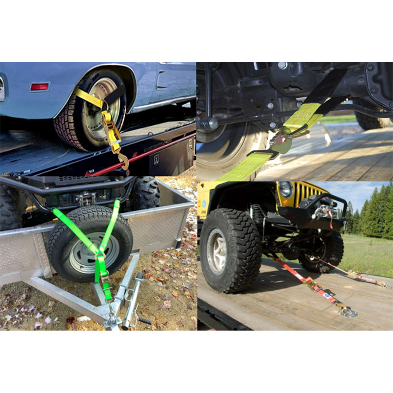 Automobilio nešiklio dirželis 10000 svarų automobilio vilkiko ratas – greitas ir paprastas būdas pritvirtinti transporto priemonę prie bortinės priekabos arba automobilio vežėjo.